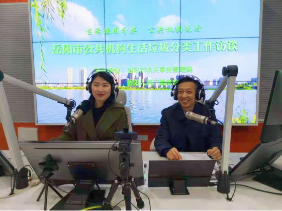 12月11日下午,岳阳市机关事务管理局党组书记、局长李海林应邀走进岳阳市人民广播电台直播间,就全市公共机构生活垃圾分类工作接受专题访谈。他首先阐述了全市公共机构为什么要率先实现生活垃圾分类,介绍了目前我市公共机构生活垃圾分类推进情况,具体措施,取得的成效及存在的突出问题,对下一步实现全市公共机构生活垃圾分类全覆盖目标提出希望和要求。