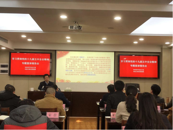 12月22日,市机关事务管理局和市扶贫办联合组织学习贯彻党的十九届五中全会精神专题宣讲报告会,市委宣传部常务副部长戴文慧作专题宣讲。