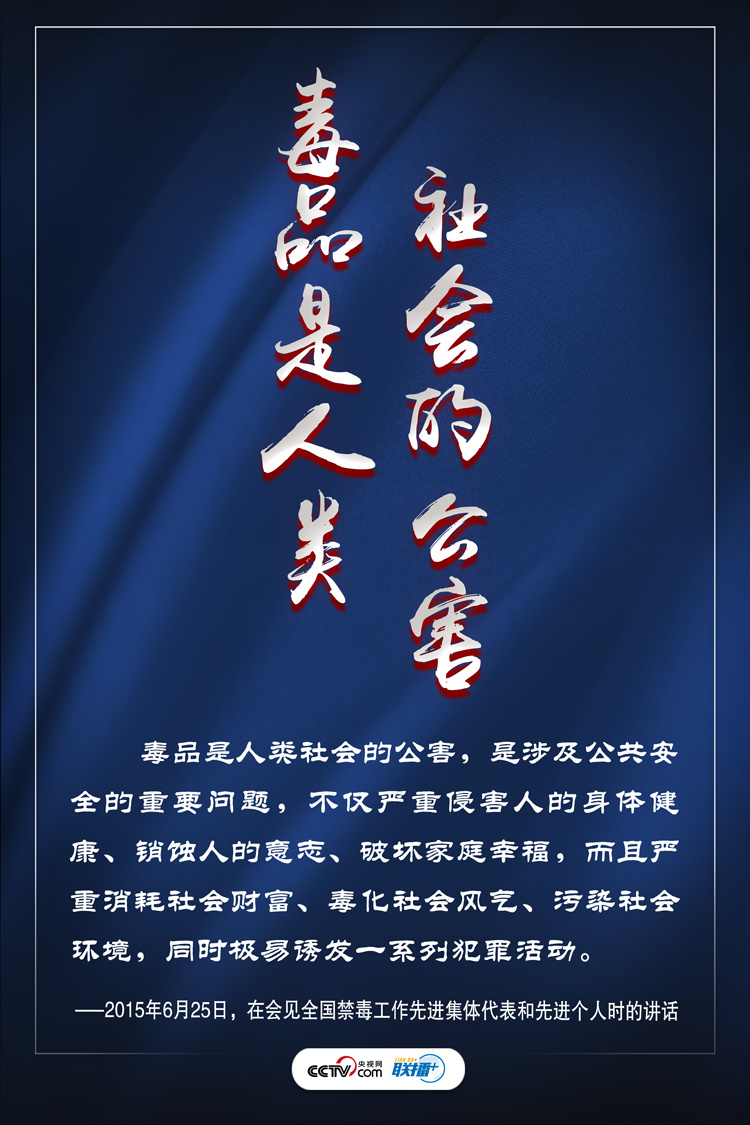 禁毒工作事关国家安危、民族兴衰、人民福祉。近年来,习近平总书记秉持以人民为中心的发展思想,多次就禁毒工作发表重要讲话,将全民禁毒提升至新的高度。央视网《联播+》特进行梳理,与您一起学习领会,提高禁毒意识,坚定打赢禁毒人民战争的信心。