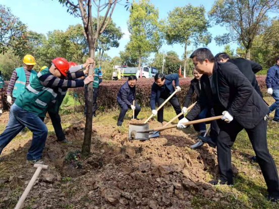 在现场,干部职工们挥锹铲土、扶苗踏实、覆土定植,各个环节有序进行、热闹非凡。“独木难成荫,树多方成林,在做好机关补绿、添绿工作的同时,也要大力提倡绿色环保”县委办副主任、中心党支部书记、主任陈兴如是说。