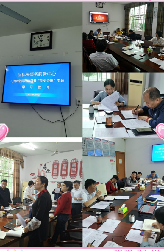 5月28日上午,云溪区机关事务服务中心开展党史教育第三阶段“学史崇德”专题学习辅导和思想交流活动。会议组织全体党员合唱红歌《没有共产党,就没有新中国》,观看红色影片《百炼成钢》。随后,中心党组成员、副主任柳成荫以《立德明志、提升精神境界》为主题进行了学习辅导。全体党员结合工作和生活实际,深入展开了学习交流。大家纷纷表示,要把“学史崇德”活动融入工作和生活中去,从自己做起、从身边做起、从小事做起,时刻保持警惕性,自觉抵制不良习气,努力提升自身的品德和思想修养,作一个听党话、爱人民、重家风、履职责的好党员。最后,中心党组书记、主任高松农对学习和交流活动进行了点评。