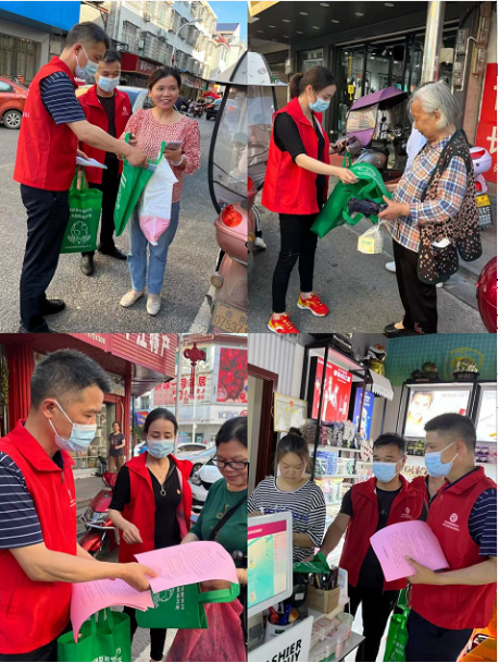 区机关事务服务中心深入天问街道办事处桔园社区,通过发放禁塑减塑倡议书、垃圾分类宣传手册及环保袋,讲解禁塑相关规定,号召广大居民群众主动参与到“垃圾分类”和“禁塑减塑”的行动中来。倡导居民群众日常购物时使用可循环使用的环保袋或溶解袋,呼吁商业经营者支持禁塑工作。