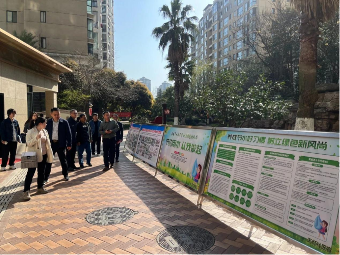 调研组首先来到南湖新区求索街道天灯社区南湖花园小区和南湖天著小区,实地查看小区的节水设施,并听取了节水基础设施、节水管理制度、节水教育活动及下一步打算等工作情况汇报。随后,调研组前往南湖新区节水教育基地——青葵园研学基地,通过查看展厅文化、视频教育、实物体验、现场互动、实践学习等内容,对基地进行了全面了解。