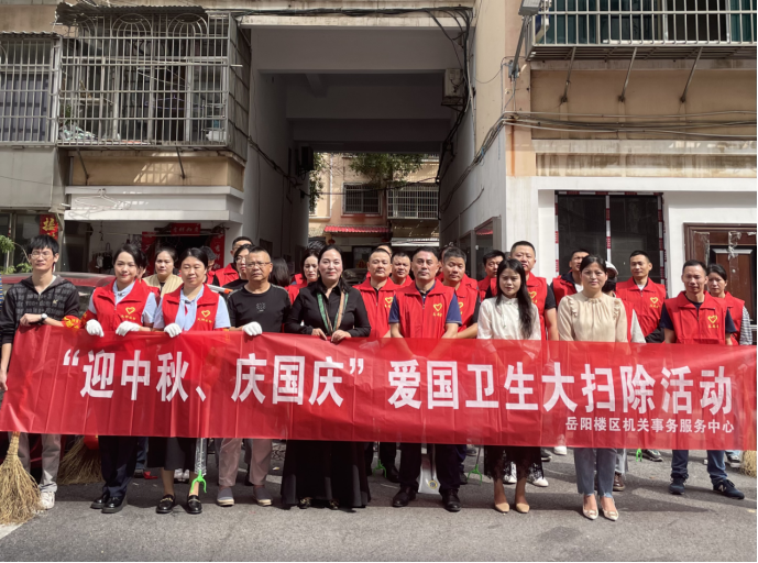 9月28日上午,在中秋、国庆“双节”前夕,为积极营造整洁亮丽、文明和谐的节日环境,岳阳楼区机关事务服务中心精心组织、多措并举、狠抓落实,积极开展爱国卫生大扫除活动。