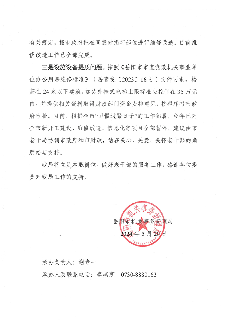 岳管字〔2024〕3号 岳阳市机关事务管理局对岳阳市政协九届三次会议第219号提案的回复
