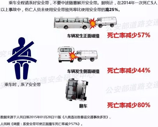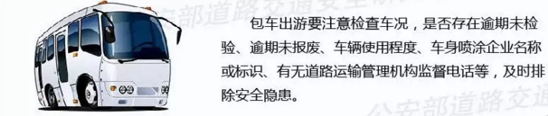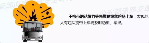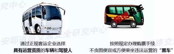 ● 选择正规营运车辆; ● 发现车辆及驾驶人有违法行为要果断举报; ● 不乘坐超员车; ● 不携带易燃易爆物品上车; ● 全程系好安全带; ● 包车出游注意检查车况,掌握车辆及驾驶人基本情况。 ![]()