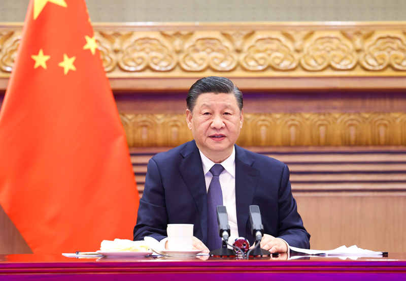 3月18日晚,国家主席习近平在北京应约同美国总统拜登视频通话。新华社记者 刘彬 摄
