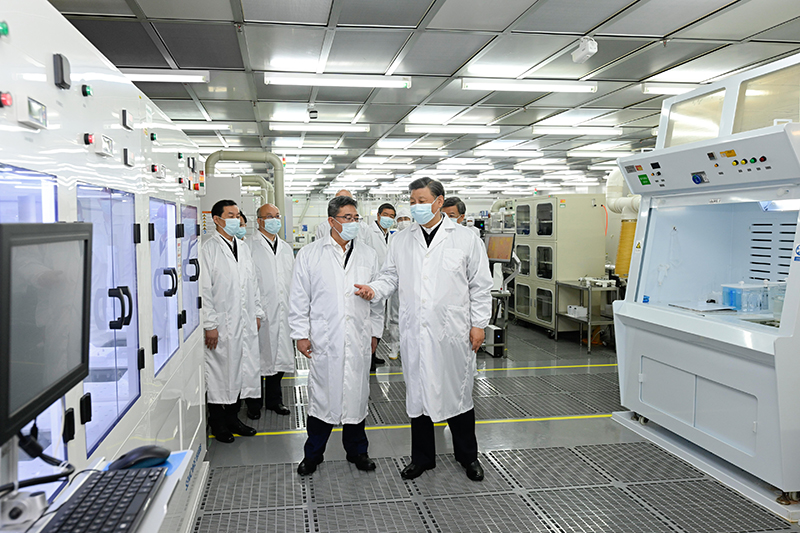 5月11日至12日,中共中央总书记、国家主席、中央军委主席习近平在河北考察,并主持召开深入推进京津冀协同发展座谈会。这是12日上午,习近平在位于石家庄市的中国电科产业基础研究院考察。新华社记者 燕雁 摄