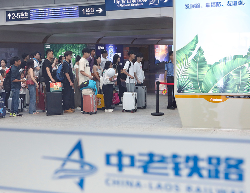 在云南景洪市的中老铁路西双版纳站,旅客有序进入站台乘车(2023年10月5日摄)。新华社发(李云生?摄)