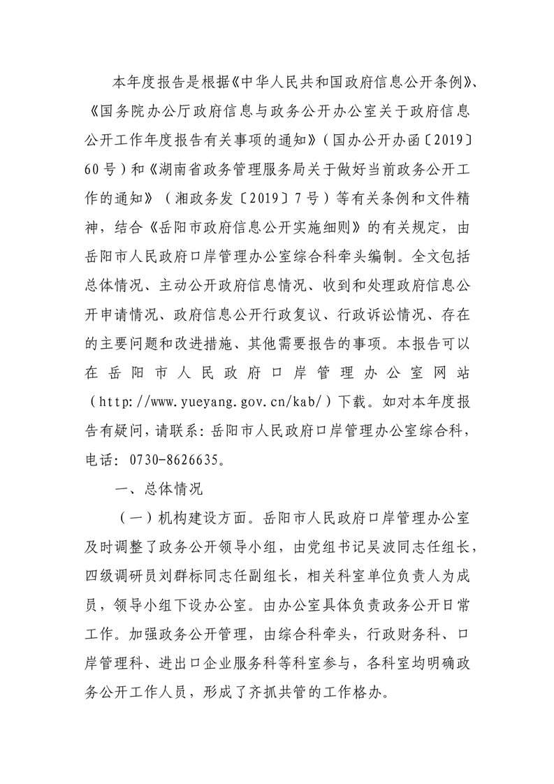 岳阳市人民政府口岸管理办公室2023年政府信息公开工作报告
