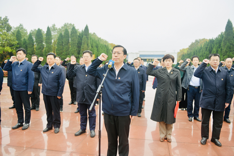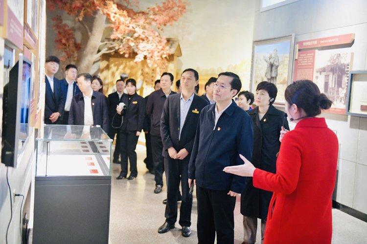 在任弼时纪念馆广场,王一鸥带领大家一起重温入党誓词,瞻仰革命先辈雕像。随后,大家走进纪念馆内,在讲解员的介绍中,回顾中国共产党的革命斗争历程,追忆革命先辈们为了民族解放和国家富强,抛头颅、洒热血的英勇事迹。