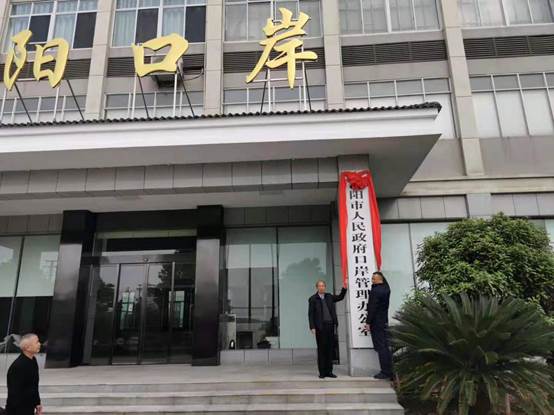 4月6日上午9点38分,岳阳市人民政府口岸管理办公室揭牌仪式在湖南城陵矶新港区岳阳口岸楼举行。办党组成员、副主任杨红杰主持揭牌仪式,党组书记、主任、二级巡视员卢大平和党组副书记、副主任刘师迅共同揭牌,卢大平主任作“搬新家、开新局”讲话。为加快建设长江中游综合性航运物流中心,零距离高效便捷支持服务城陵矶新港区、中国(湖南)自贸区岳阳片区,统一协调“三区一港三口岸”等七个平台有关对外开放的功能,助推岳阳外向型经济实现跨越发展,根据市委市政府部署,市政府口岸办从市区整体搬迁至城陵矶新港区,于4月6日正式入驻岳阳口岸楼办公。(信息员:市电子口岸信息中心陈信晖)