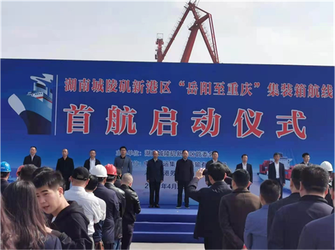 4月23日,城陵矶新港区举办了岳阳—重庆集装箱航线首航启动仪式。城陵矶新港区党工委书记李建华,岳阳市政府口岸管理办公室主任卢大平,岳阳海关关长王东辉,城陵矶新港区党工委副书记、岳阳自贸片区管委会主任周玉萍、湖南省港务集团有限公司董事长徐国兵、城陵矶新港区党工委委员、管委会副主任李岳东,上海泛亚航运有限公司副总经理罗海林,武汉中远海运集装箱运输有限公司副总经理李文俊,岳阳市政府口岸管理办公室副主任杨红杰,湖南远洋集装箱运输有限公司董事长黄道平,湖南省港务集团有限公司常务副总经理尹显东等出席。