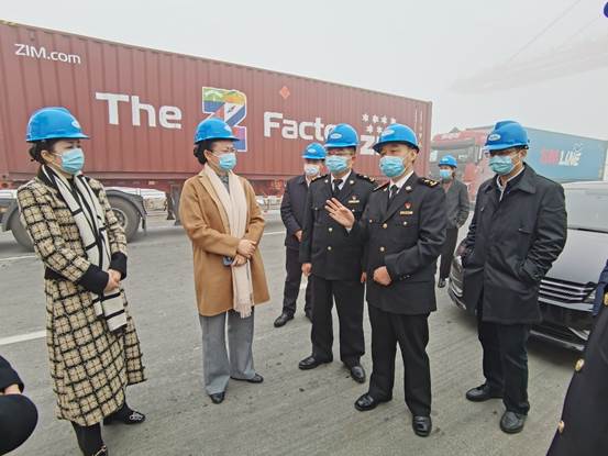 1月12日,副市长魏淑萍来到城陵矶新港码头调研督导疫情防控工作,市政府副秘书长李谦,市口岸办党组书记吴波、主任赵群子,岳阳海关关长王东辉等陪同。
