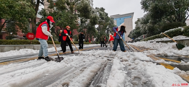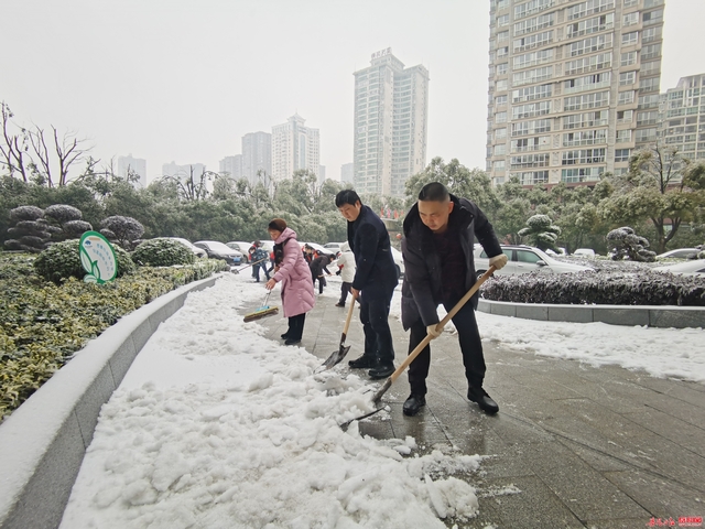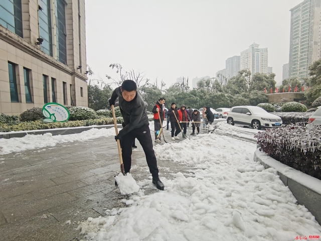 2月4日上午,市财政局、市政府口岸办干部职工手持铁锹、扫帚等工具,走上街头开展义务扫雪活动,清扫路面积雪,保障大家出行,共同维护岳阳美好的城市环境。