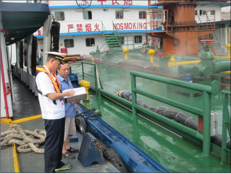近期,随着气温的持续攀升,每日最高温度已突破30摄氏度,岳阳海事局城陵矶海事处七里山执法大队辖区范围内到港油船装卸作业面临新的安全考验,按照油船高温作业规范要求,执法人员认真开展油船到港检查。
