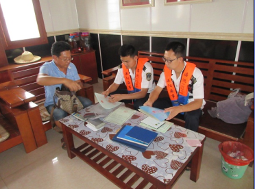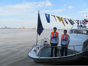 2017年7月11日上午,三江口执法大队执法人员清早便为“海巡12263”挂上了满旗,并于上午0900时鸣笛一分钟。并通过现场巡航等方式大力开展航运安全知识的宣传,通过向广大船员、乘客及相关人员现场讲解的形式,介绍“中国航海日”的来历,普及大家的航运知识,弘扬郑和精神,传播海事文化,宣扬“安全航行”理念和重要性,增进广大船民对航运及海事相关知识的了解。