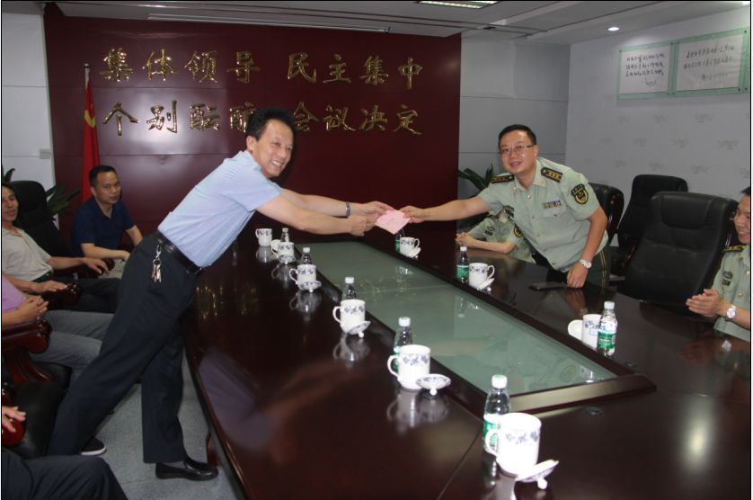 7月27日上午,“八一”建军节即将到来之际,市政府口岸办党组书记、主任何移兵率领口岸办党组成员走访慰问岳阳边防检查站全体官兵。