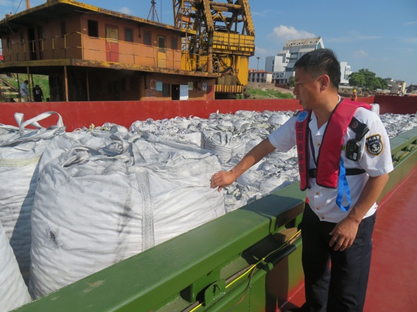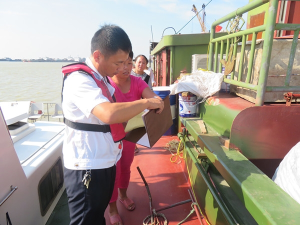 2017年8月22日,岳阳三江口执法大队当班执法人员乘“海巡12263”巡航至辖区外贸码头时,发现一艘船舶正在装卸一不明货物,执法人员立即依法登船现场仔细查看该轮所载货物情况,并从船舶的前艏、中部、尾部干舷进行了测量,同时要求其提供本航次船舶载运货物清单及相关缴迄证明核实了该轮申报的货物吨位情况。最后,执法人员将港口建设费的相关政策对其予以宣贯,要求船方要按时足额缴清相关费用,船主表示一定积极配合海事部门港口建设费征管工作,尽快缴清相关规费。