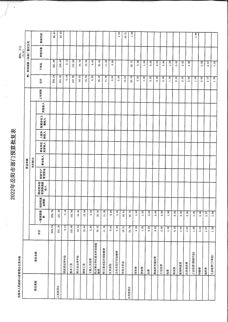 市口岸办2022年度预算公开