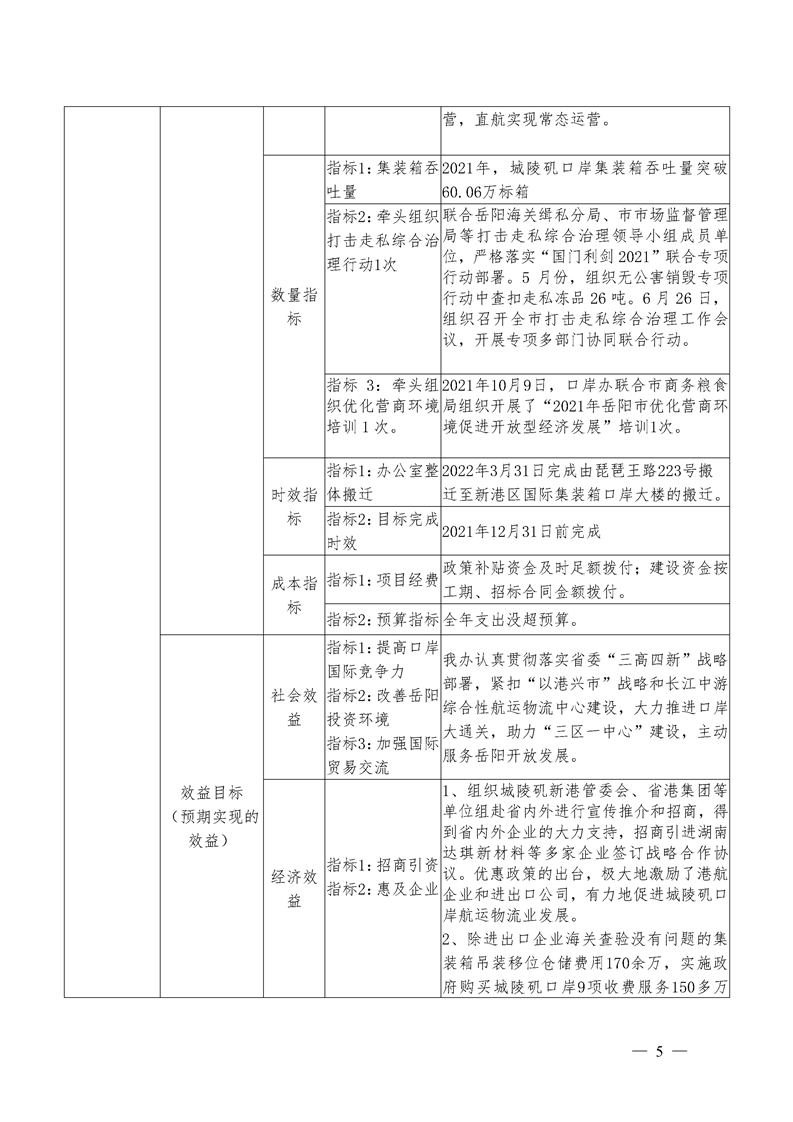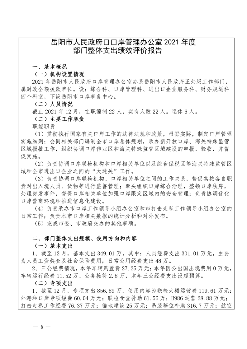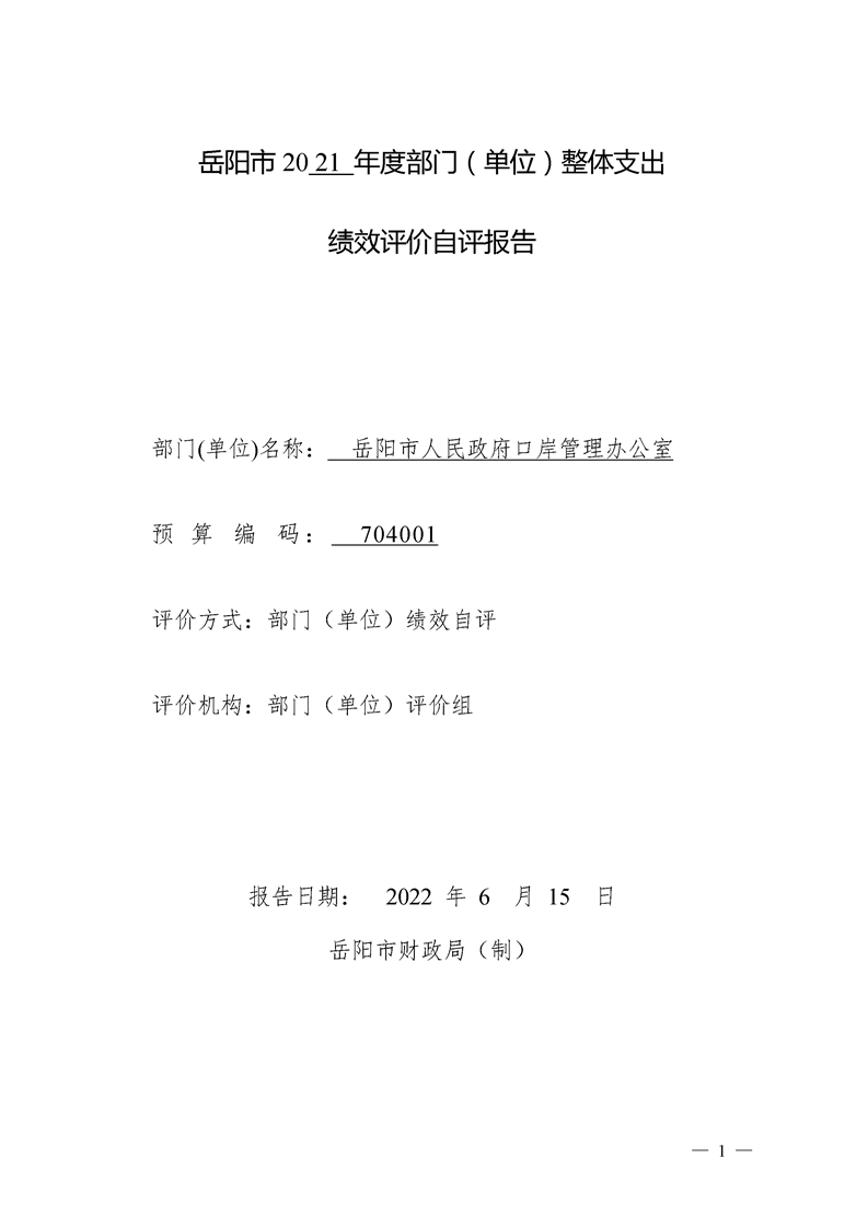 岳阳市人民政府口岸管理办公室2021年度部门(单位)整体支出绩效评价自评报告
