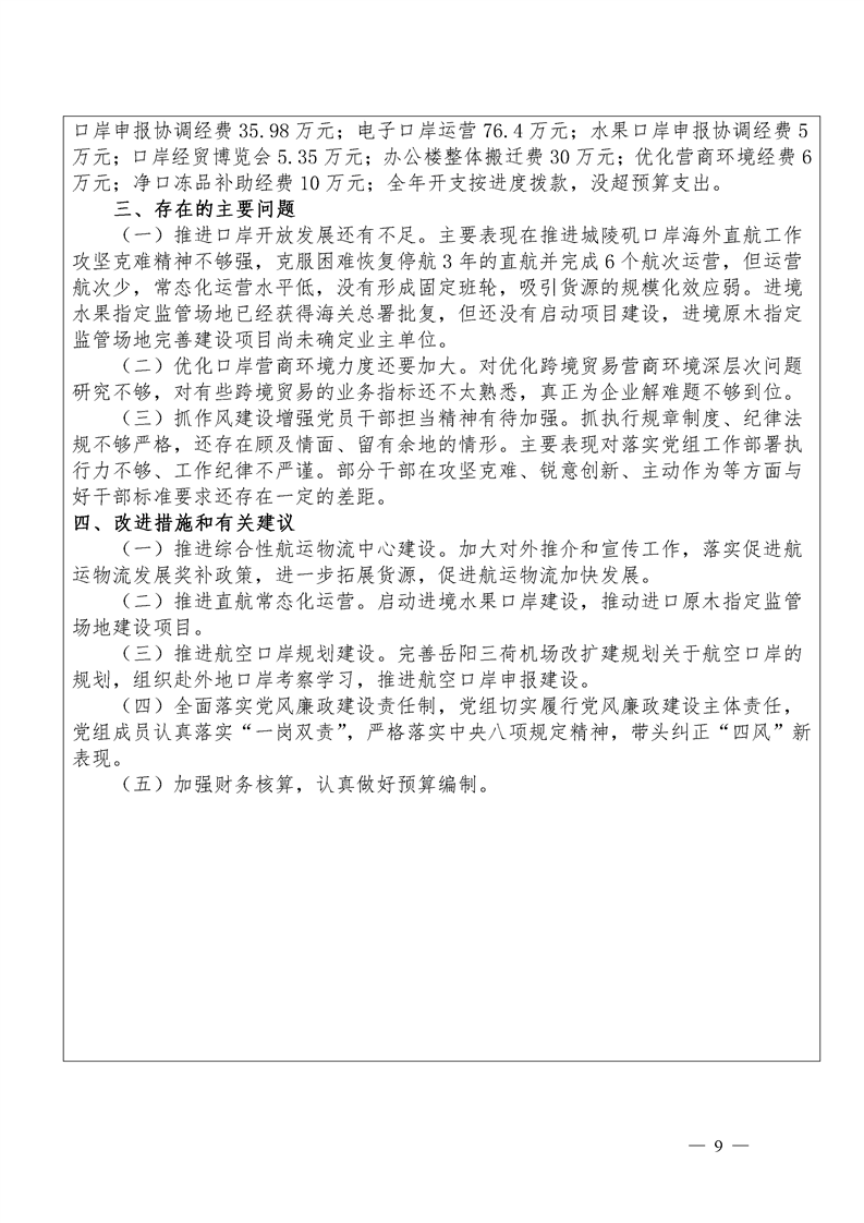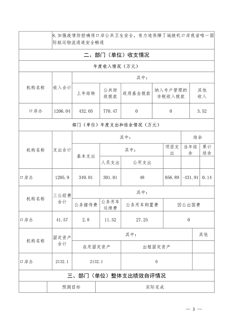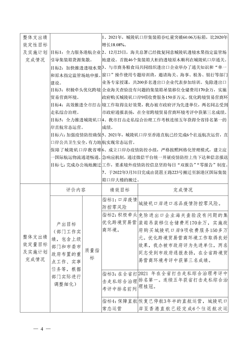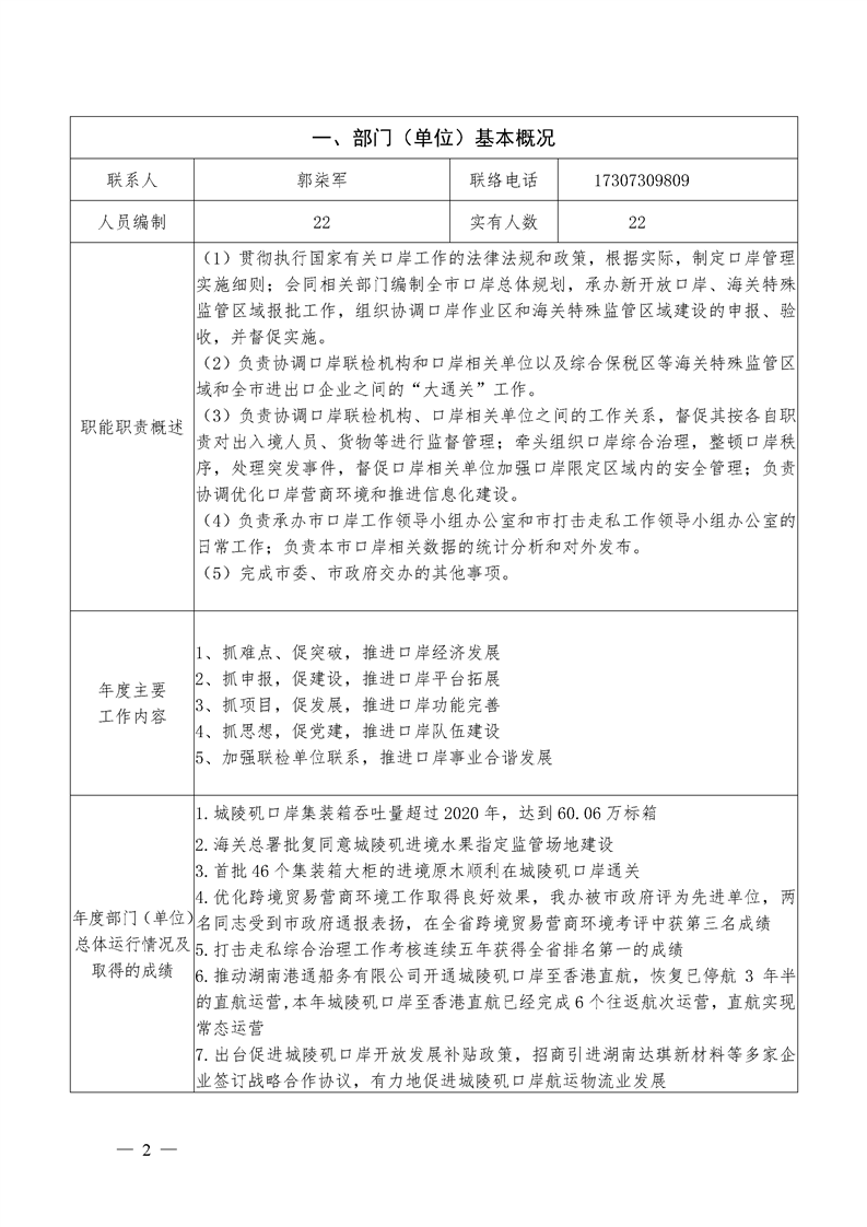 岳阳市人民政府口岸管理办公室2021年度部门(单位)整体支出绩效评价自评报告