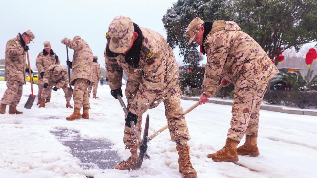 21日至22日,冻雨如期而至。市城管部门调派大型铲雪车,在市中心城区主次干道,采取“歇人不歇车”模式连续不间断作业;武警岳阳支队官兵在岳阳东站三公里范围除雪破冰,疏导交通、保障交通要道顺畅;岳阳交警最大限度将警力投入路面,加强道路巡逻及重点路段的交通指挥,对易结冰路段开展除雪融冰作业,全力以赴保障道路安全。