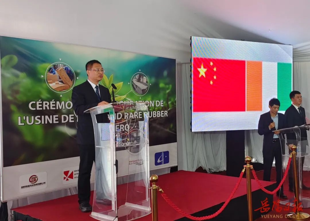 21日,美兰·观盛合资橡胶三厂正式投产,谢卫江出席投产仪式并致辞。谢卫江表示,美兰·观盛合资橡胶加工三厂顺利投产,是落实中科两国元首重要共识、推进“一带一路”倡议的重要行动,也是增进湖南和岳阳与科特迪瓦两地情谊、持续深化合作的务实举措。岳阳将进一步加强与科特迪瓦在非资源性产品加工、现代农业、装备制造和文化旅游等领域的合作,推动合作关系向更高水平发展,为新时代深化中非合作、巩固中非友谊作出新的贡献。下萨桑德拉自治区区长菲利普·D·莱格出席并致辞。投产仪式前后,代表团还实地考察了圣佩德罗港,了解港口规划运营情况,考察了美兰集团橡胶有限公司及美兰·观盛合资橡胶一厂,了解企业生产经营等情况。