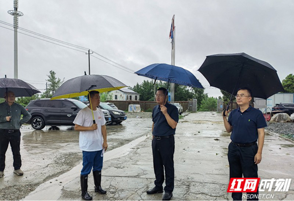 6月22日上午,岳阳市水利局党组书记、局长何晖在冶湖撇洪渠地区调度水工程防洪排涝工作。