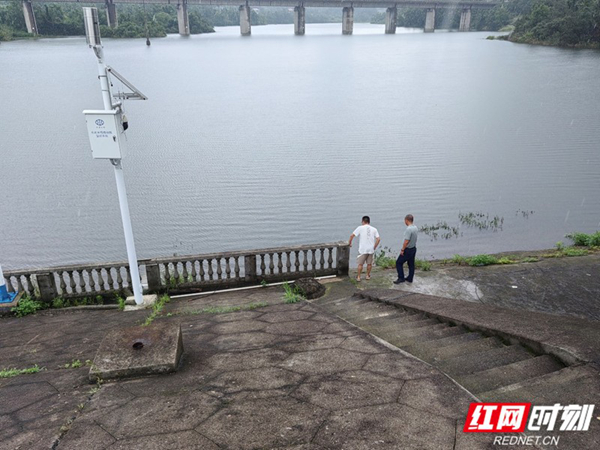 6月23日上午,岳阳楼区水利局技术干部在黄洋水库开展度汛安全检查。