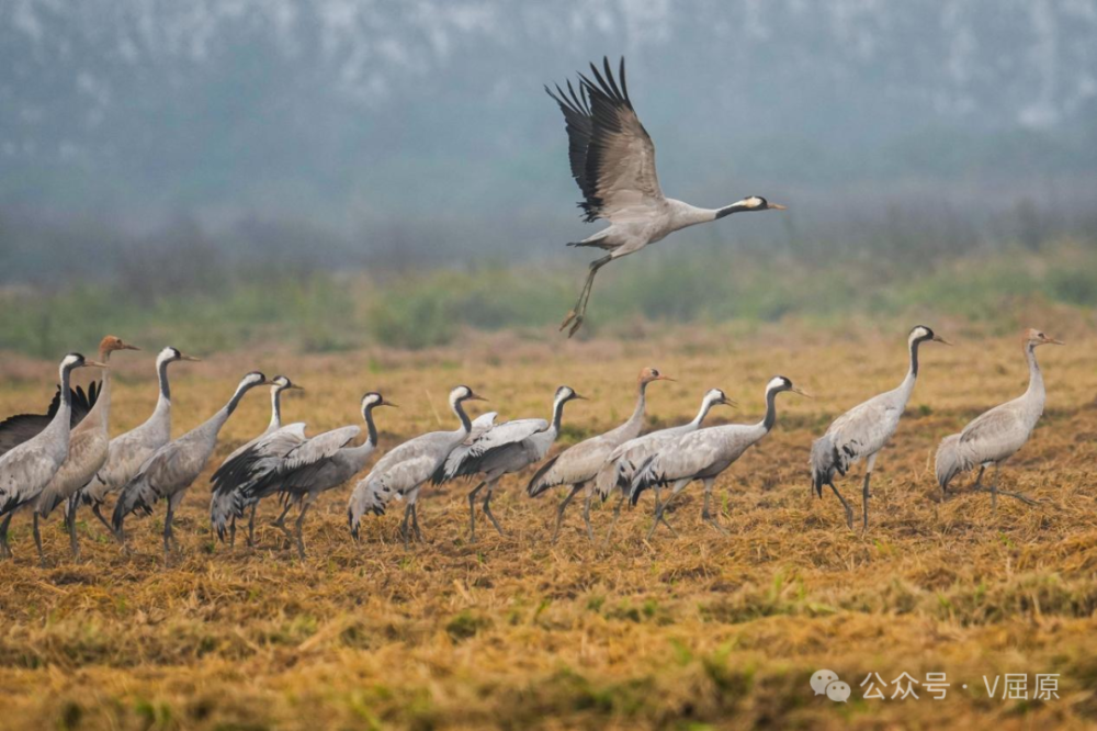 作为洞庭东岔围垦区域,这里工业污染少、农田广布,水稻种植与水产养殖结合的生态农业体系,既能为素食候鸟提供充足植物根茎与粮食残余,也能为肉食候鸟备齐丰沛鱼虾,足以支撑长达四个多月的越冬需求。