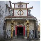 木制雕窗和梁拖,两根门柱由砖块堆砌而成。 |