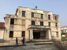 砖混结构,木质楼梯,墙面残留宣传标语。 |