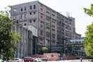 腈纶车间的生产设备车间,共七层,外墙为咖啡色干粘石,窗户全部为水泥预制通风花格窗。 |
