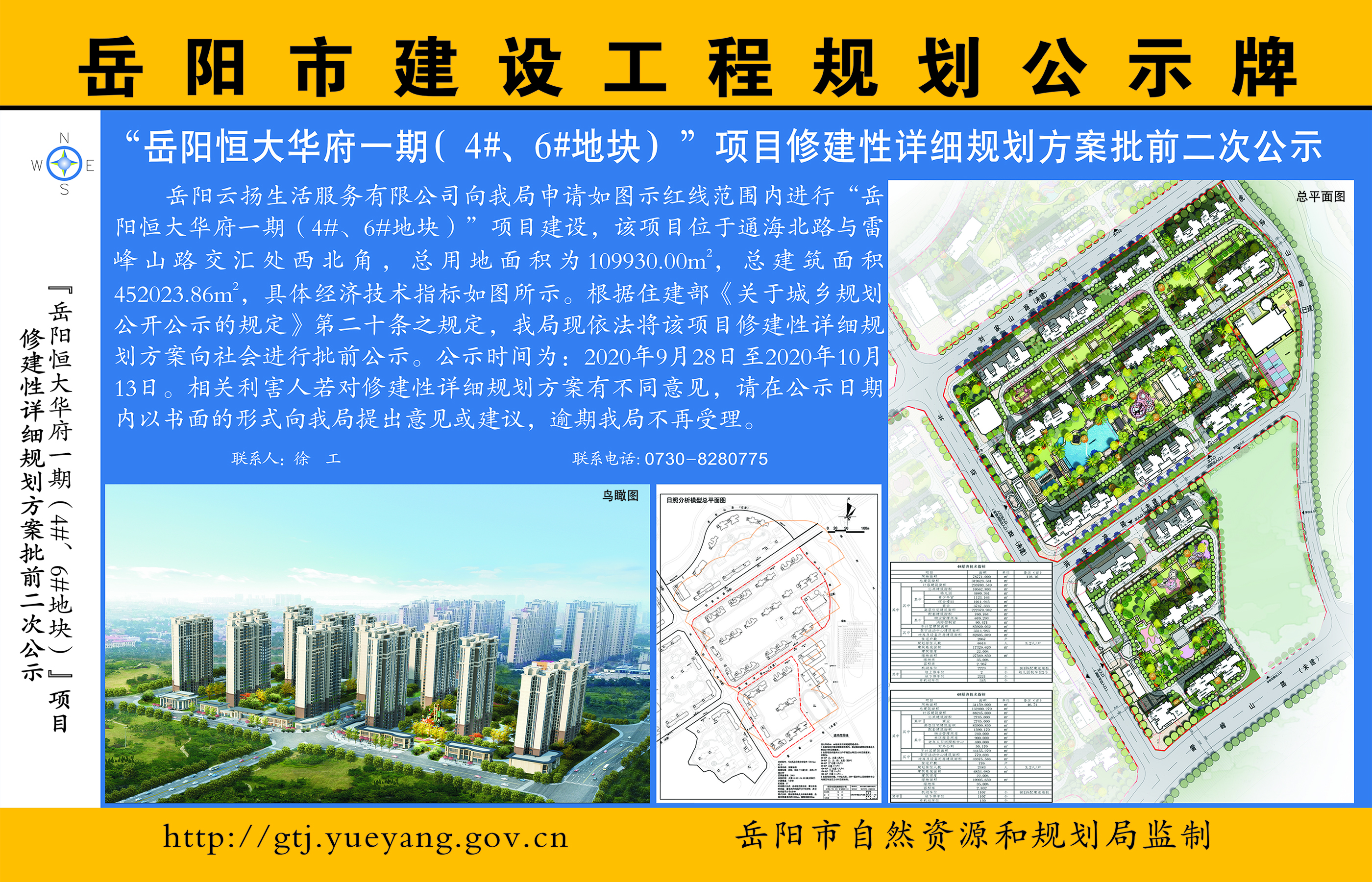 “岳阳恒大华府一期(4#、6#地块)”项目修建性详细规划及建筑方案二次批前公示