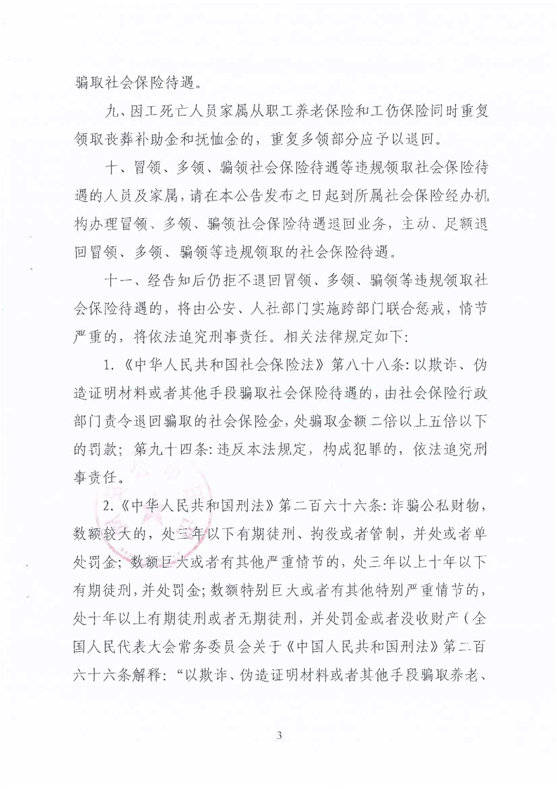 关于打击违规领取社会保险待遇暨追缴冒领多领社会保险待遇有关事项的公告