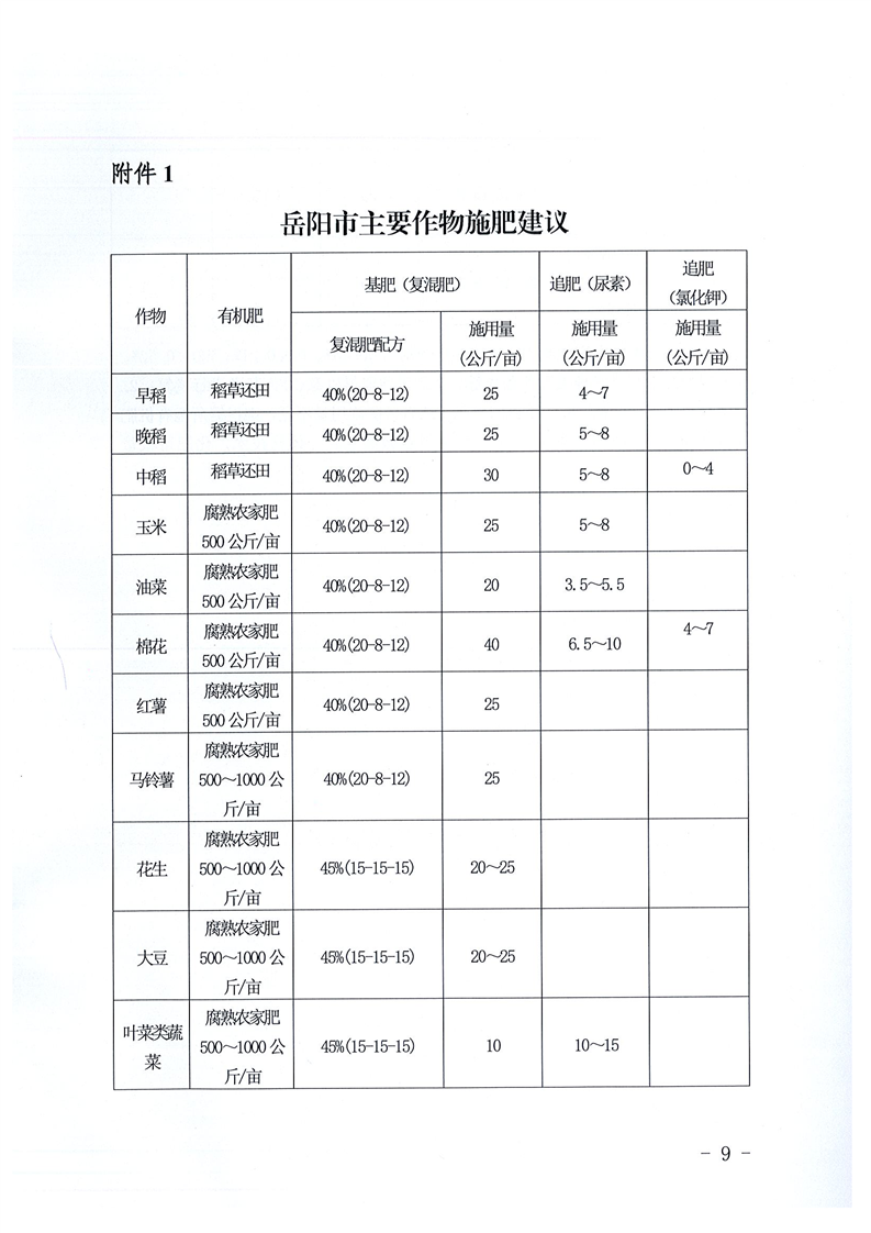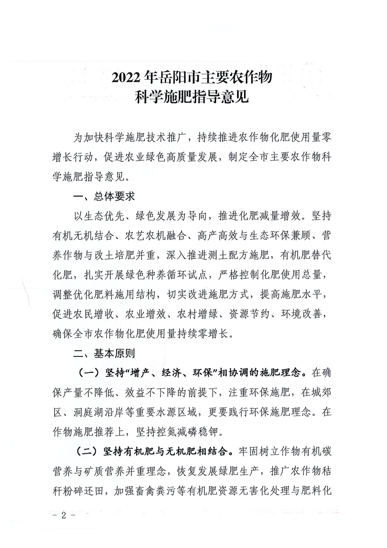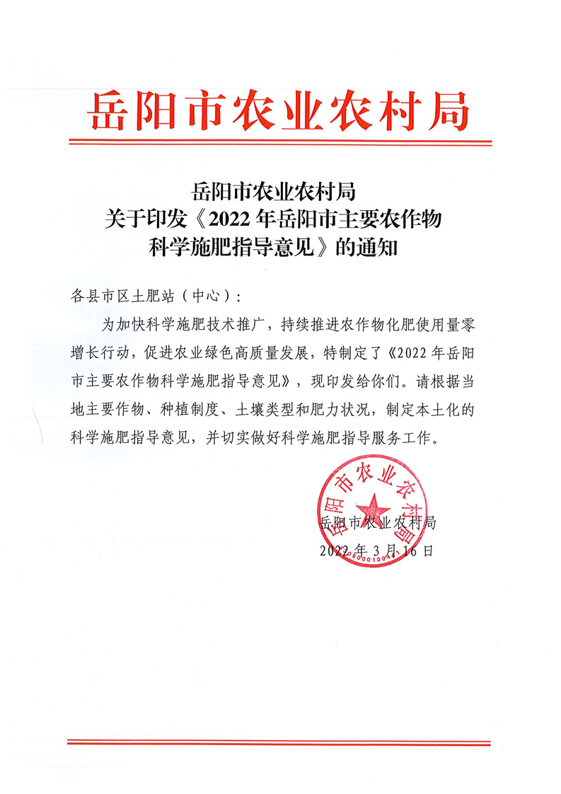 岳阳市农业农村局关于印发《2022年岳阳市主要农作物科学施肥指导意见》的通知
