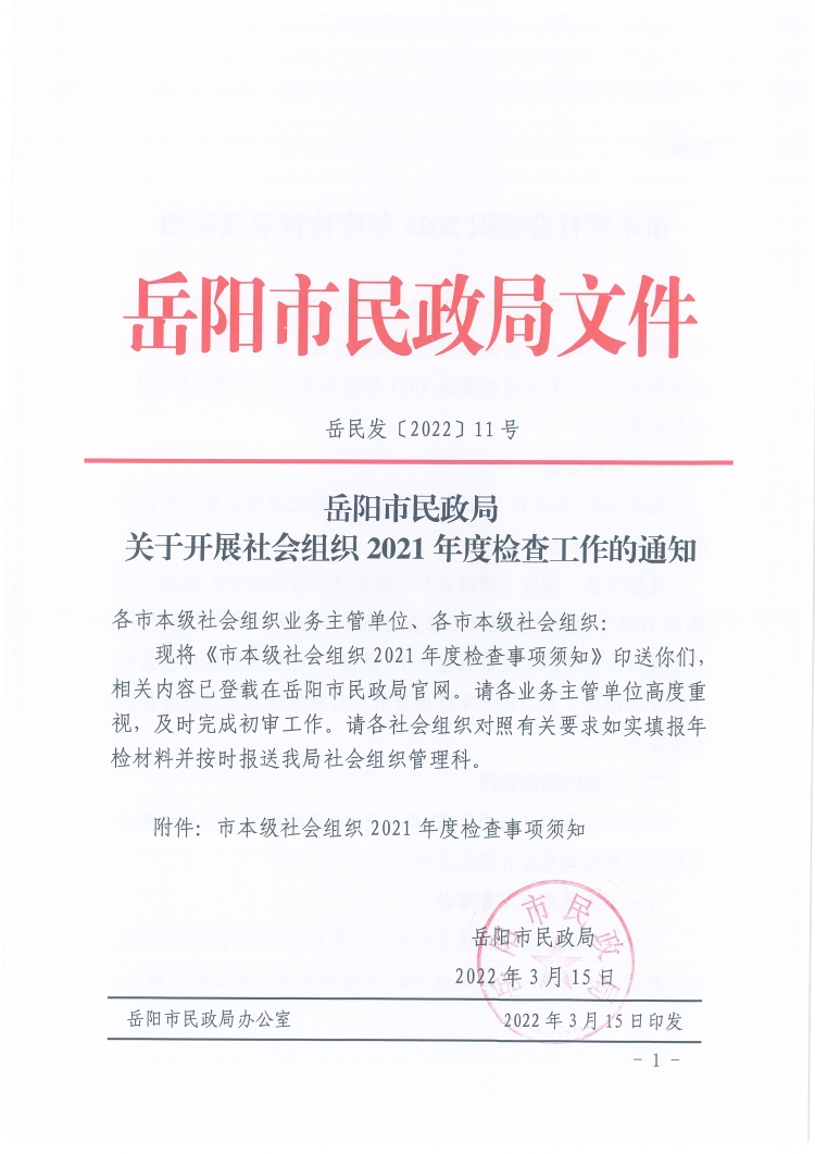 岳阳市民政局关于开展社会组织2021年度检查工作的通知