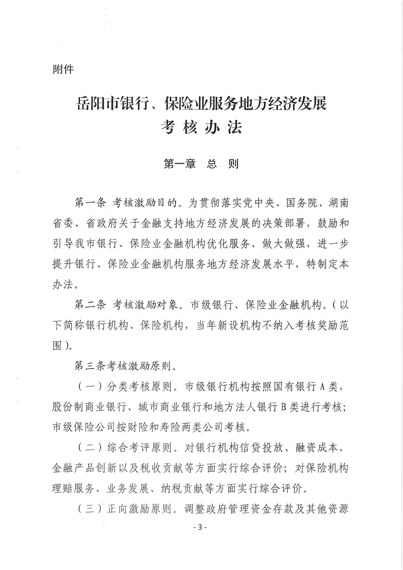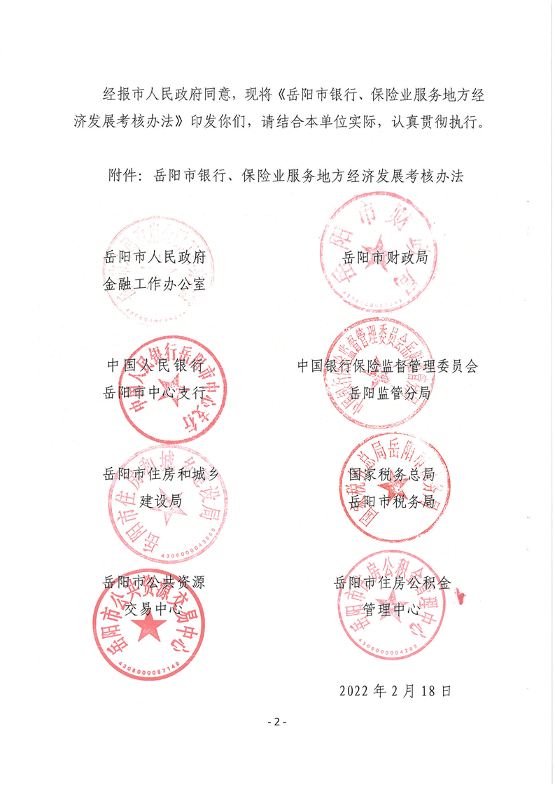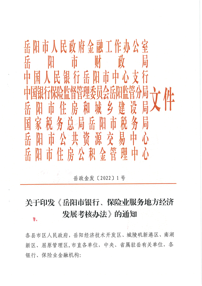 关于印发《岳阳市银行、保险业服务地方经济发展考核办法》的通知