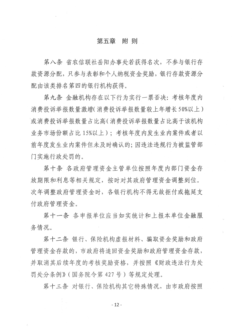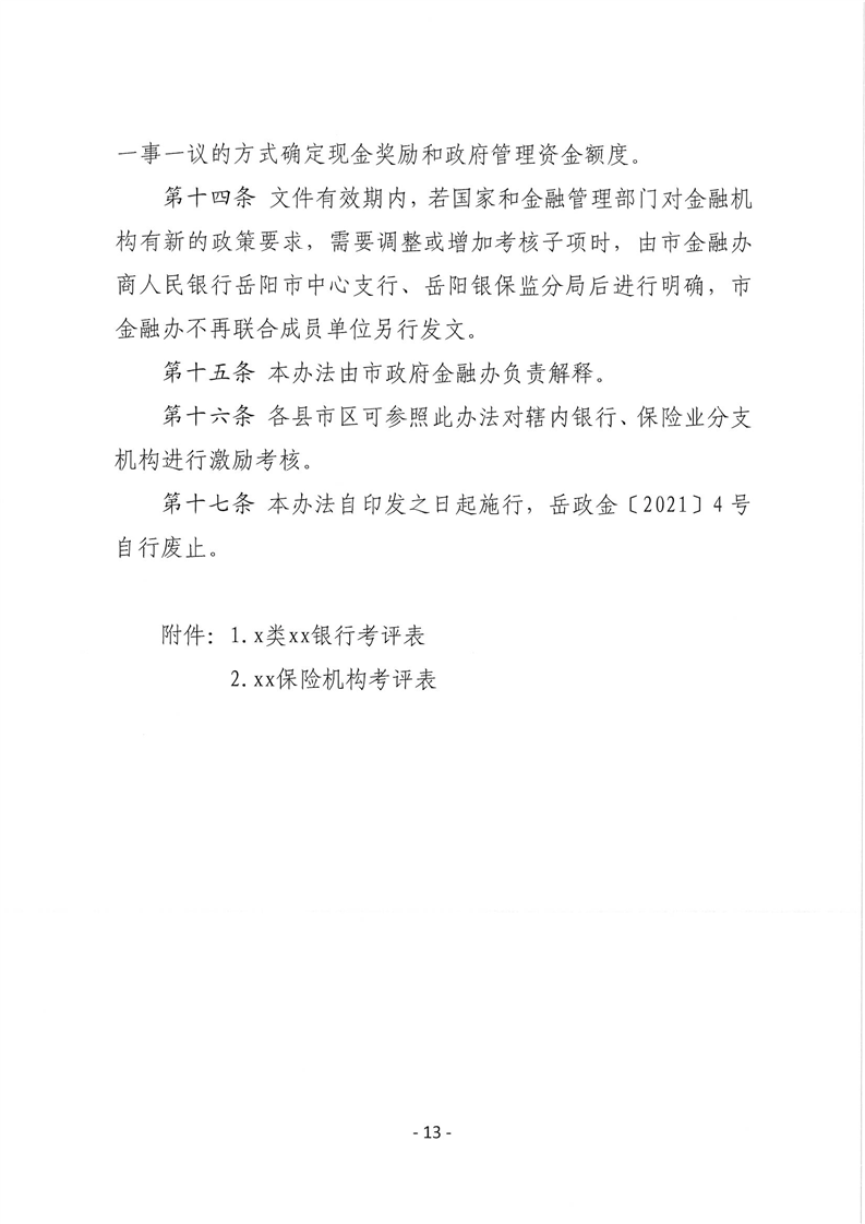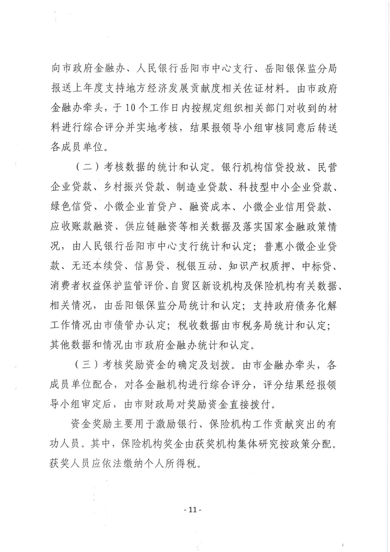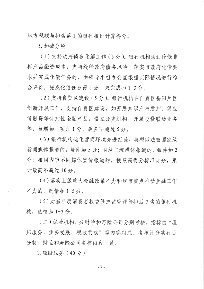 关于印发《岳阳市银行、保险业服务地方经济发展考核办法》的通知