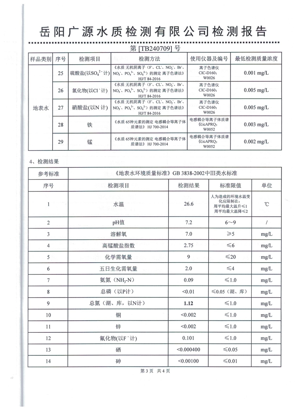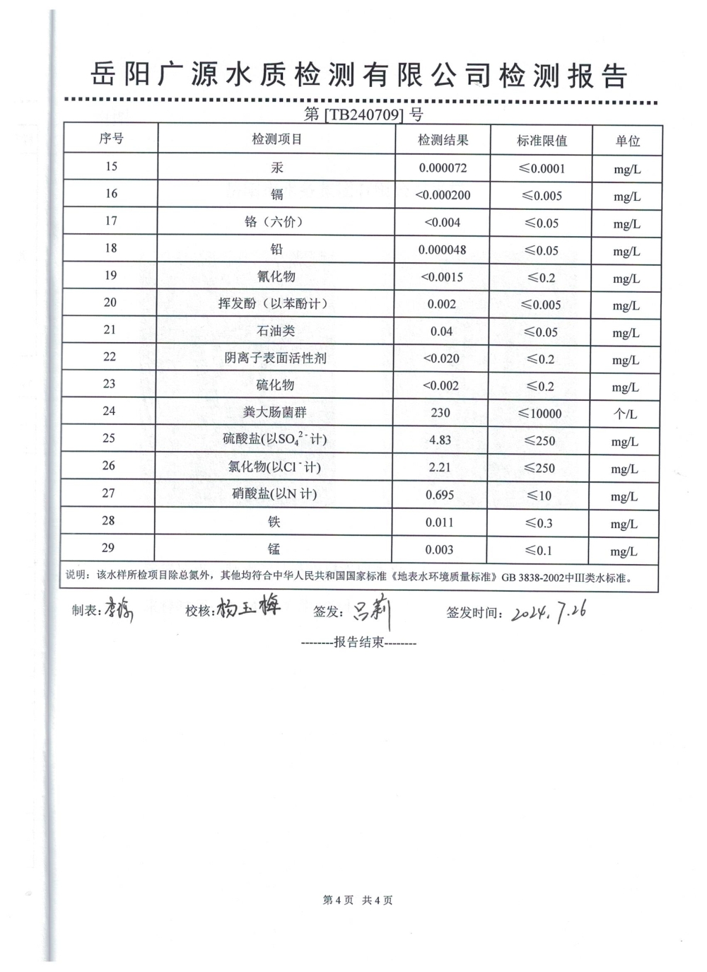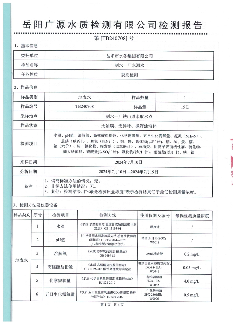 2024年7月岳阳市水务集团水源水水质检测月报表