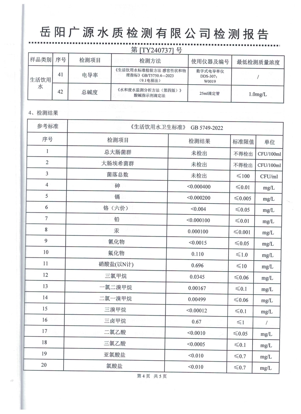 2024年7月岳阳市水务集团出厂水水质检测月报表