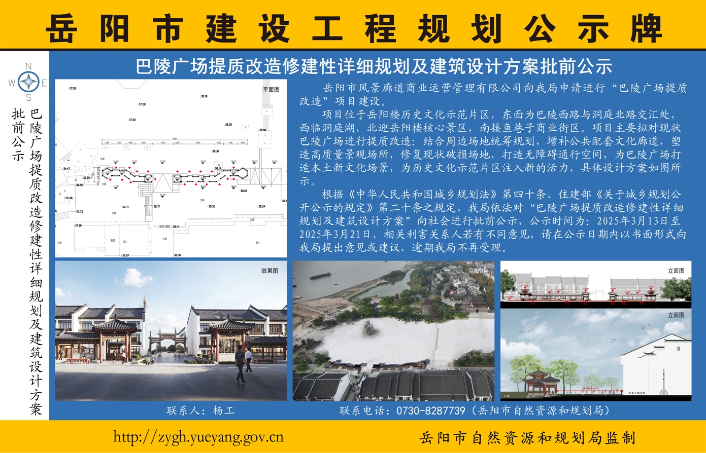 巴陵广场提质改造修建性详细规划及建筑设计方案批前公示