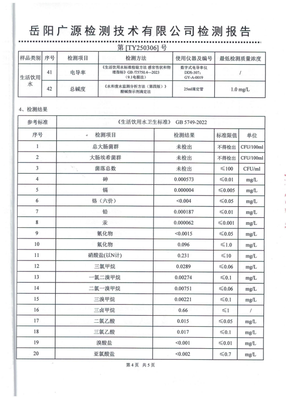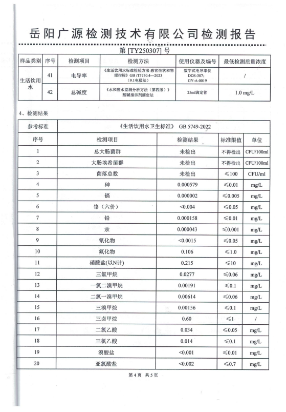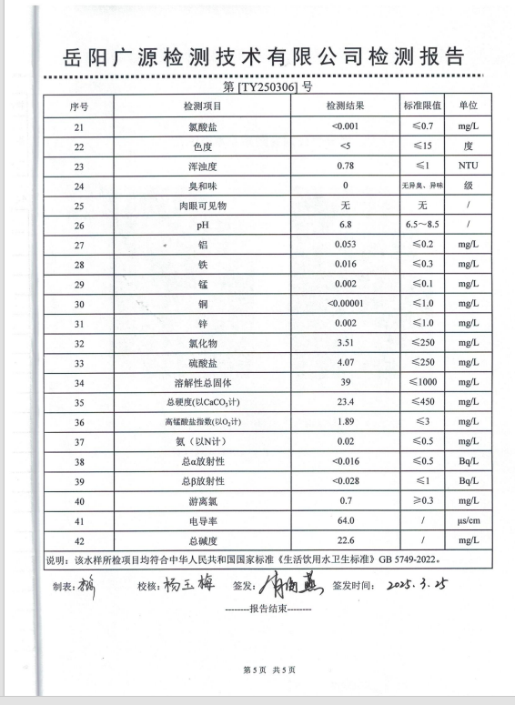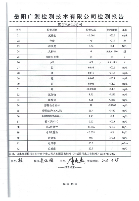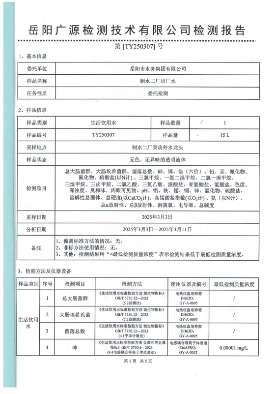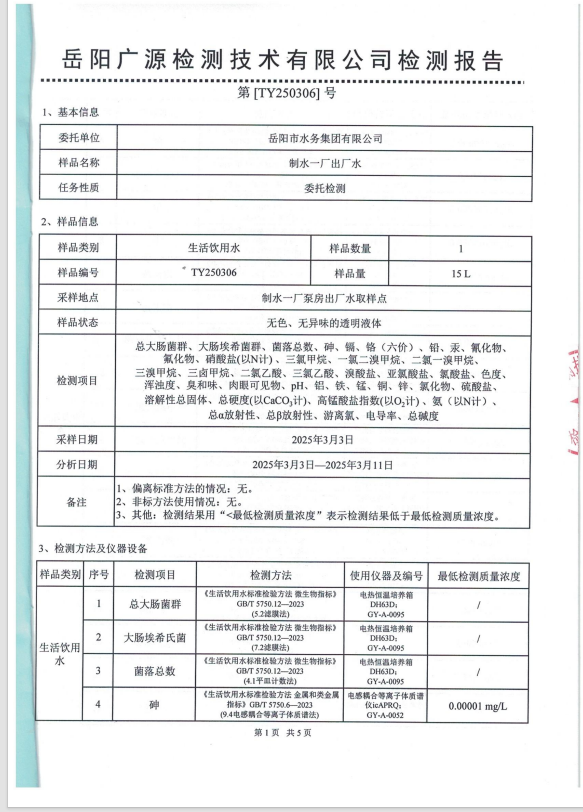 2025年3月岳阳市水务集团出厂水水质检测月报表