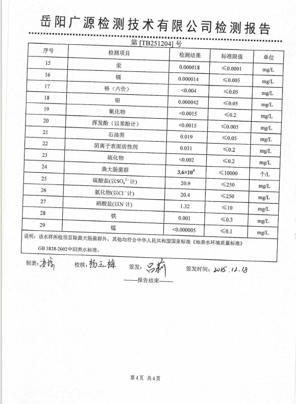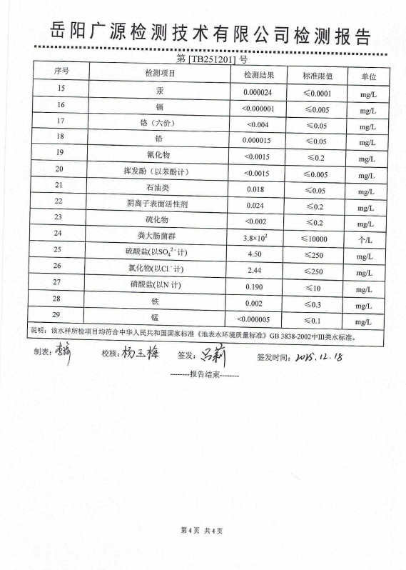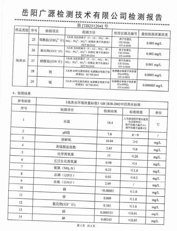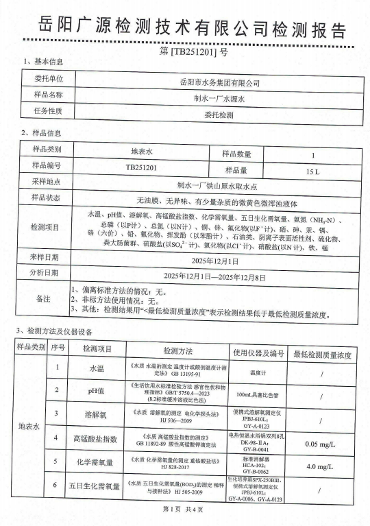 2025年12月岳阳市水务集团水源水水质检测月报表