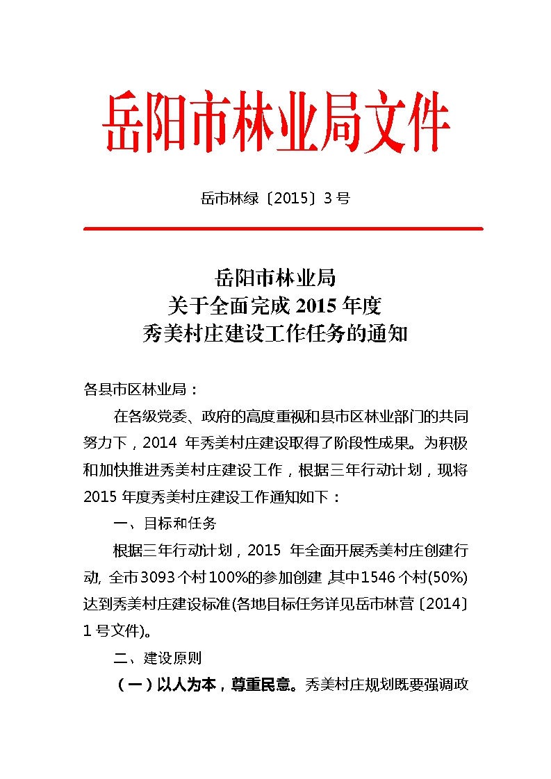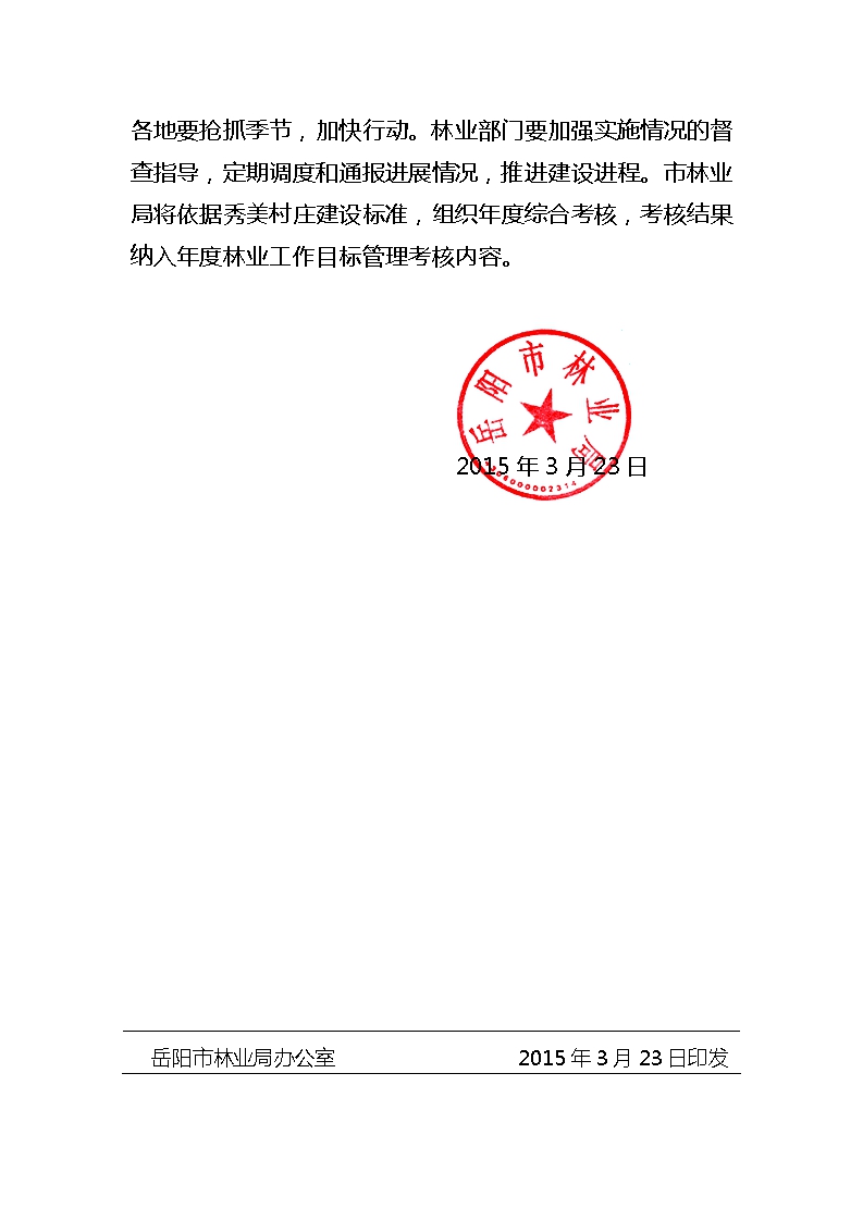 岳阳市林业局关于全面完成2015年度秀美村庄建设工作任务的通知