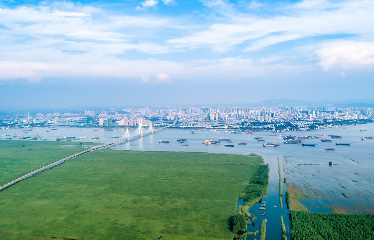 7月13日,岳阳城沐浴在夏日阳光中,巴陵胜状美不胜收。去年以来,岳阳市推进湘江保护与治理“一号工程”、洞庭湖水环境综合治理五大专项行动,强力治污、治水、治气、治砂,聚焦农业面源污染、工业污染、城乡生活污染等10项任务,整改关闭洞庭湖、长江沿岸超标排污口15个,整改关停超标排污企业24家。东洞庭湖7个水质监测断面达标率同比2016年提升9.5个百分点,环境质量持续改善。湖南日报记者 徐典波 摄