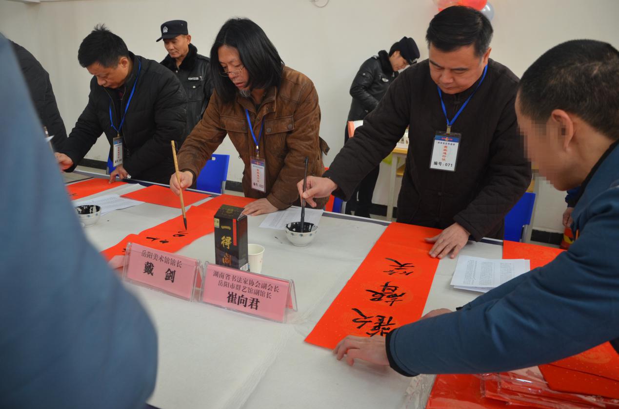 2月7日上午,岳阳市文广新局党组成员、副局长甘学红带领岳阳市群艺馆与岳阳市美术馆的书画家们一行来到岳阳监狱开展“贺新春、送文化、携手迈进新时代——岳阳监狱亲情帮教活动”,为监狱干警和服刑人员家属送春联,贺新春。