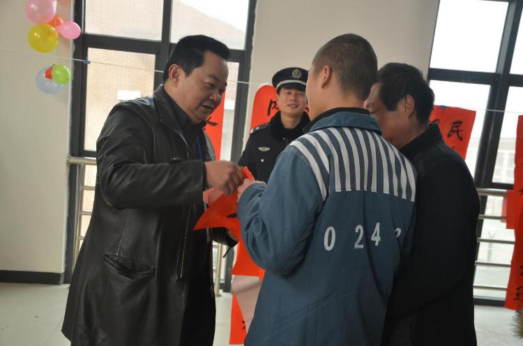 市文广新局党组成员、副局长甘学红向监狱干警和服刑人员家属赠送春联