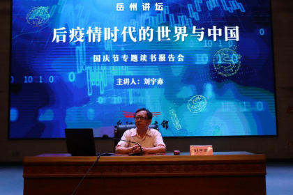 9月29日上午,岳阳市图书馆一楼多功能报告厅,岳阳市委党校二级巡视员、教授刘宇赤作客“岳州讲坛”,为百余听众带来《后疫情时代的世界与中国》的国庆专题讲座,深入浅出的精彩讲座,对现场听众准确把握国际视野下的中国经济社会形势非常有益。